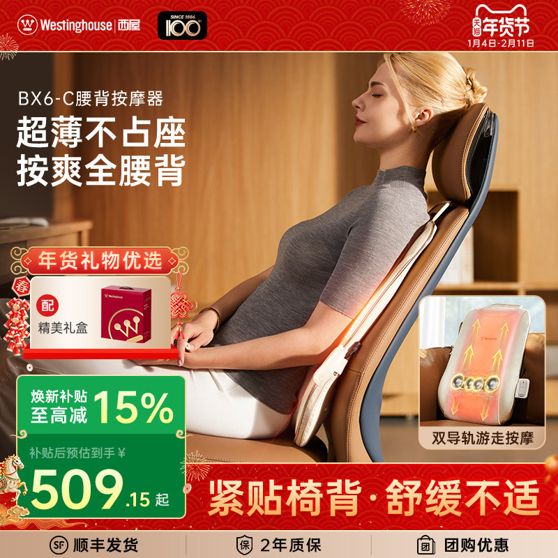 美国西屋BX6-C腰部按摩仪全自动揉捏全身按摩靠垫躺垫背部按摩器
