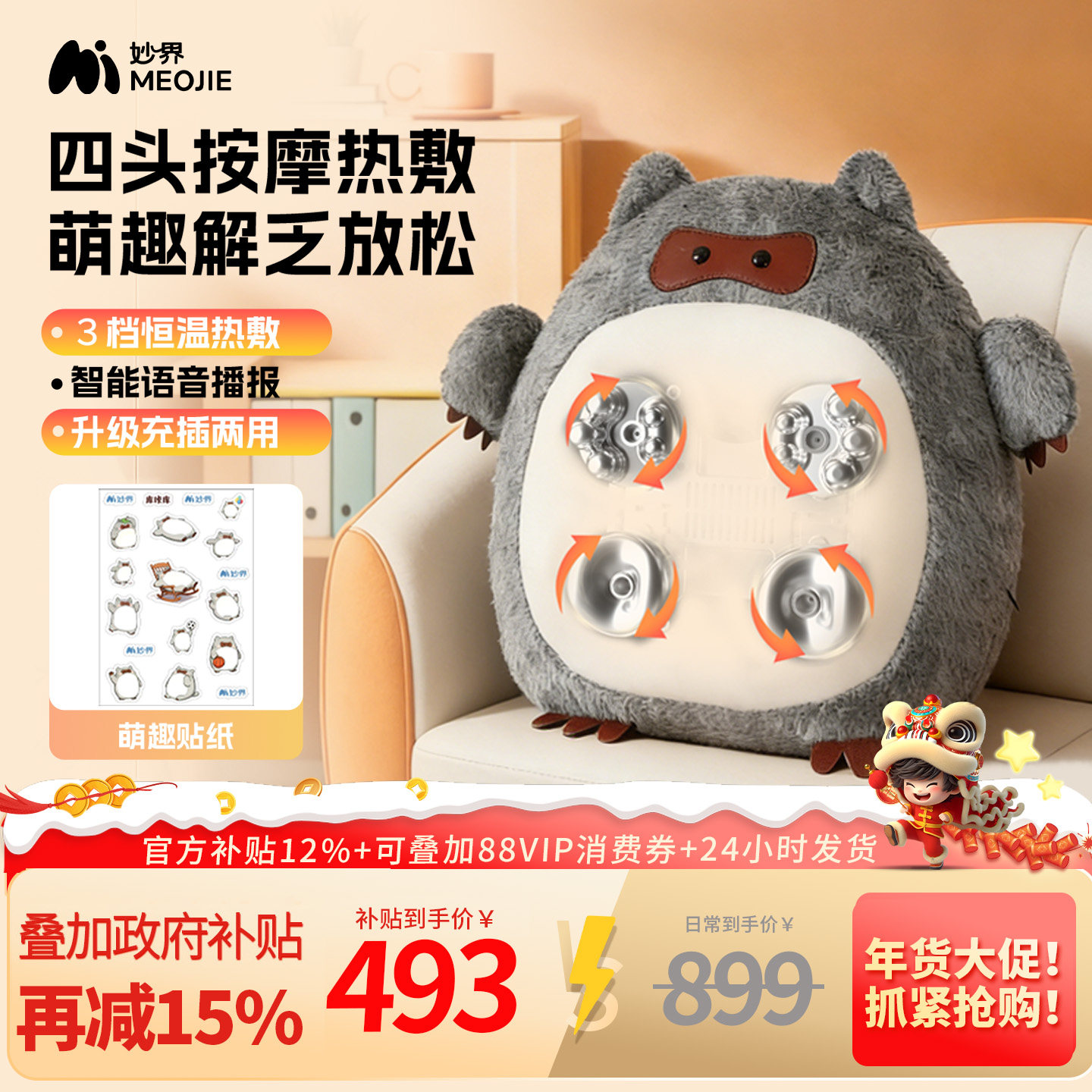 妙界M3颈椎按摩仪器背腰部揉捏无线全身按摩枕车载家用两用按摩器