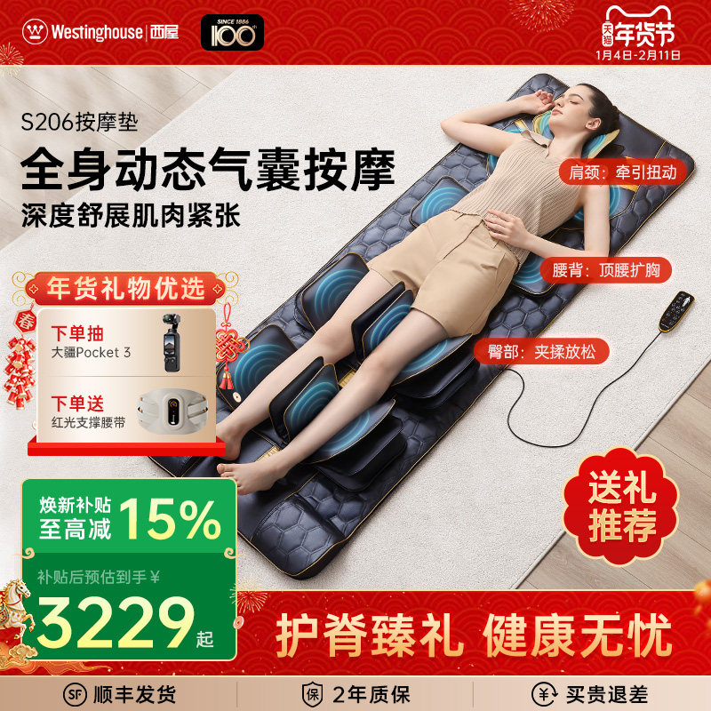 美国西屋按摩靠垫S180腰背部全身按摩器全自动按摩仪分体按摩椅