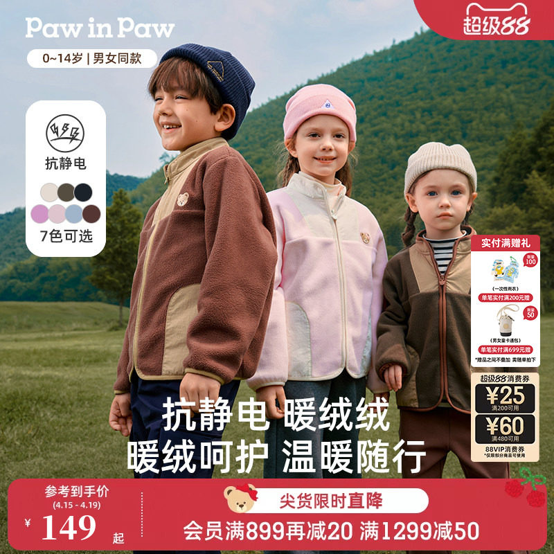 【抗静电】PawinPaw卡通小熊童装秋冬男女宝宝户外毛绒外套