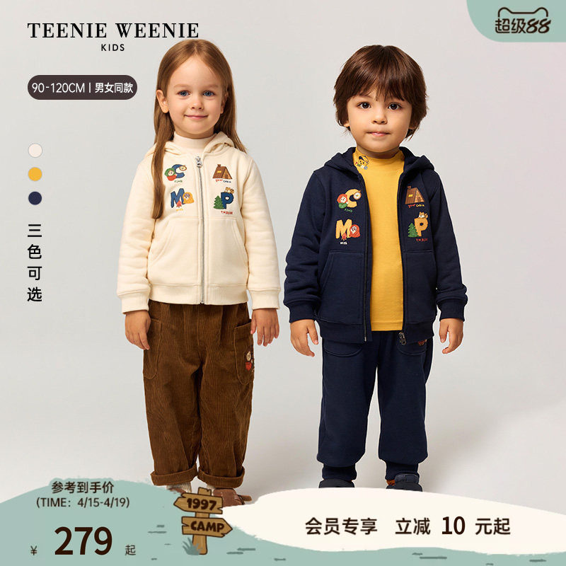 TeenieWeenie Kids小熊童装秋冬季男女宝加绒连帽卫衣开衫外套