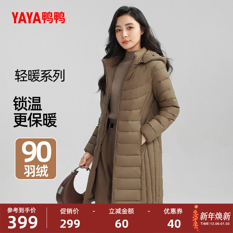 - 轻薄长款羽绒服女过膝连帽