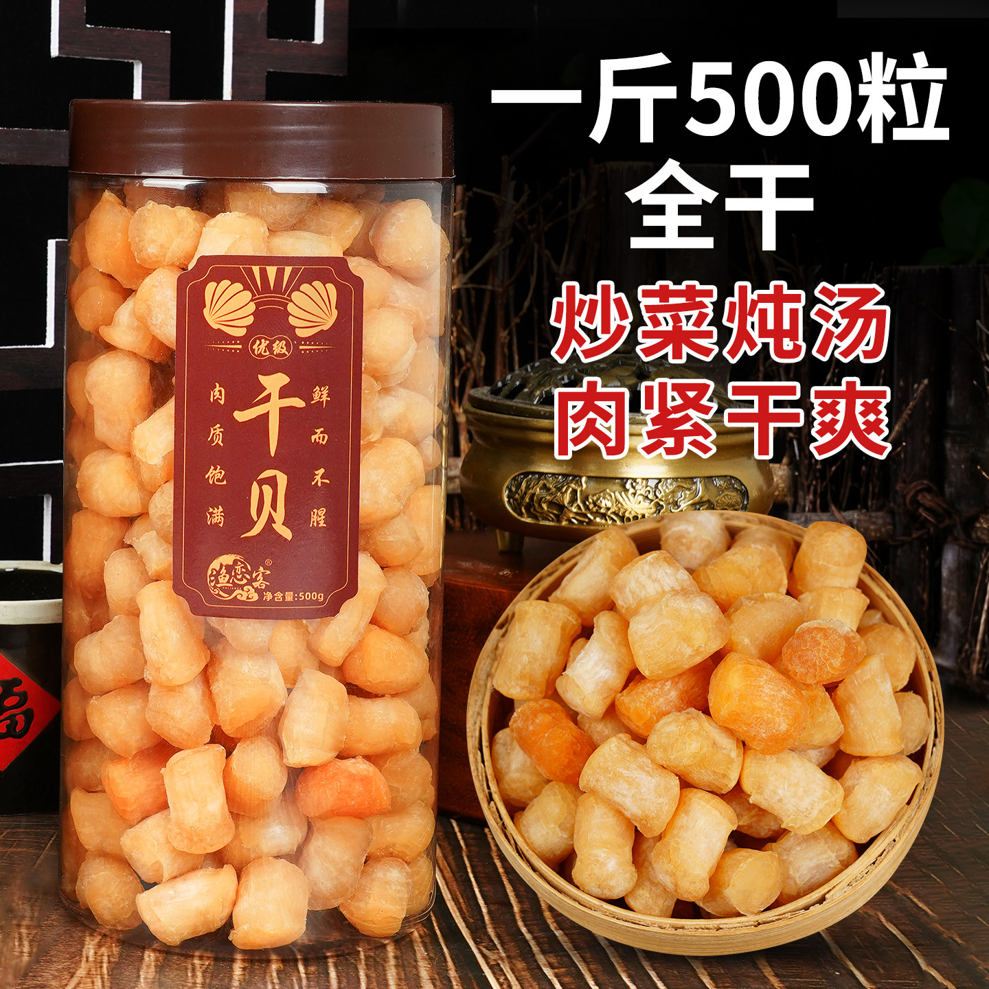 干贝瑶柱500g海鲜扇贝肉一斤非特级扇贝柱野生元贝海产品干货贝柱
