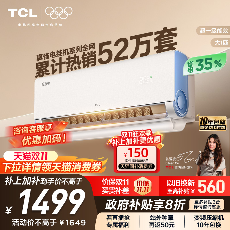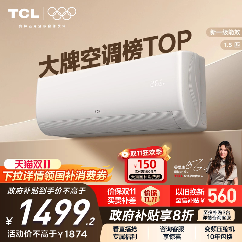 TCL空调大1匹挂机新一级能效变频冷暖壁挂式静音节能省电官方正品