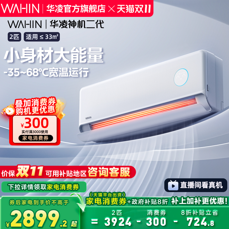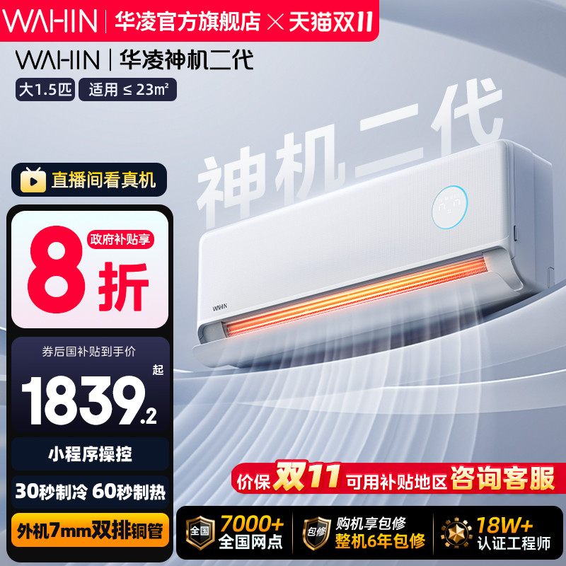 华凌空调双排神机二代HE家用挂机变频冷暖新一级大1.5匹2匹壁挂式