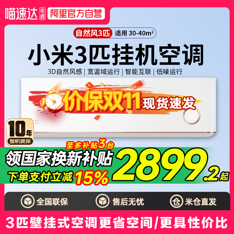 【国补15%】小米空调3匹冷暖家用变频新能效壁挂式自然风鎏金版80