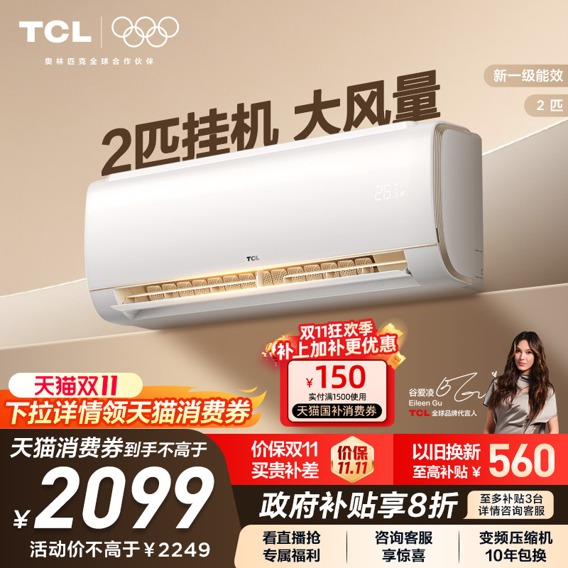 TCL空调2匹大挂机节能柔风新一级冷暖大风量客厅家用变频壁挂式
