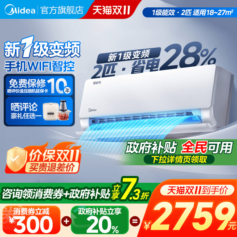 美的空调2匹挂机一级变频冷暖官方正品家用壁挂式客厅静音酷省电