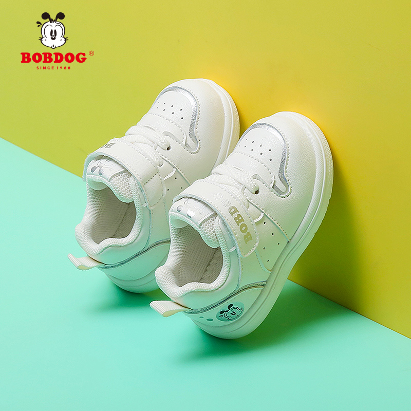 巴布豆童鞋儿童白色运动鞋春秋款网面透气男童纽扣小白鞋女童鞋子