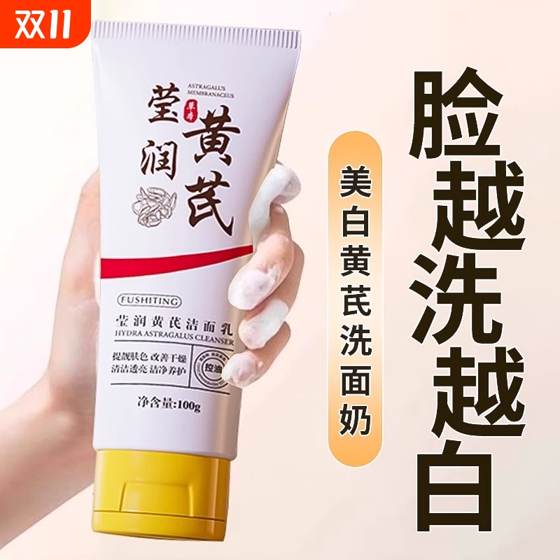 黄芪洗面奶深层清洁老牌国货保湿减黄控油洁面男女乳旗舰正品脸部