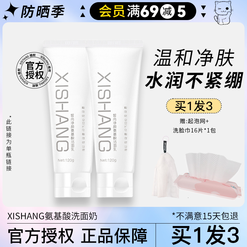 菲诗小铺纯氨基酸洗面奶洁面男士泡沫清洁油皮学生官方旗舰店正品