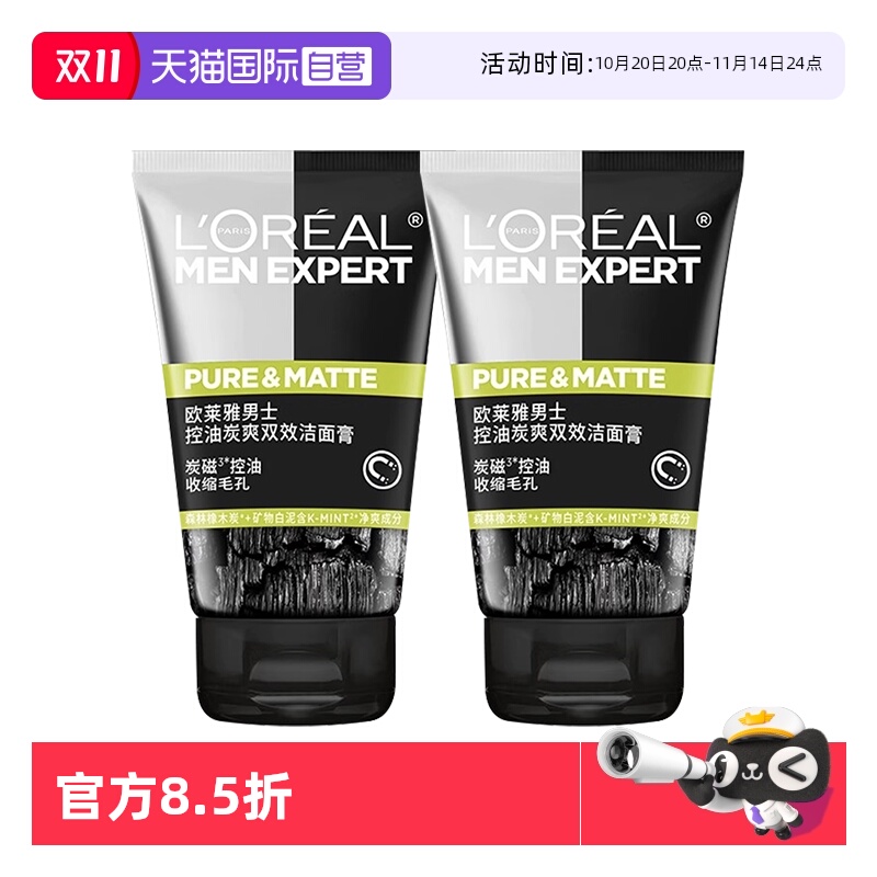 【自营】欧莱雅炭爽双效控油洁面男士护肤深层清洁收缩毛孔洗面奶