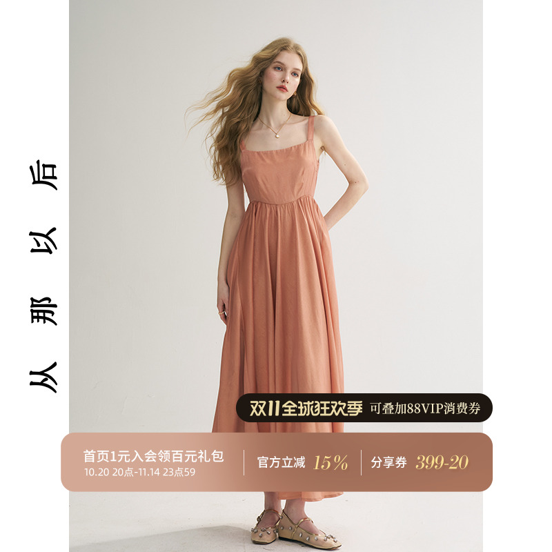 从那以后法式吊带连衣裙度假沙滩风夏长款纯色裙子收腰长裙女夏季