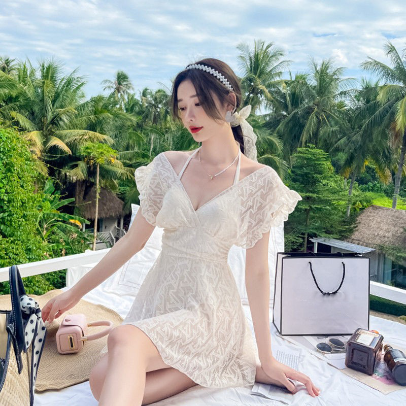 【单独一片式裙】韩版新款ins风纯色比基尼防走光裙沙滩度假裙