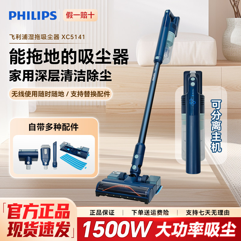 飞利浦家用多功能手持吸尘器XC5141大吸力无线吸拖一体机长续航新