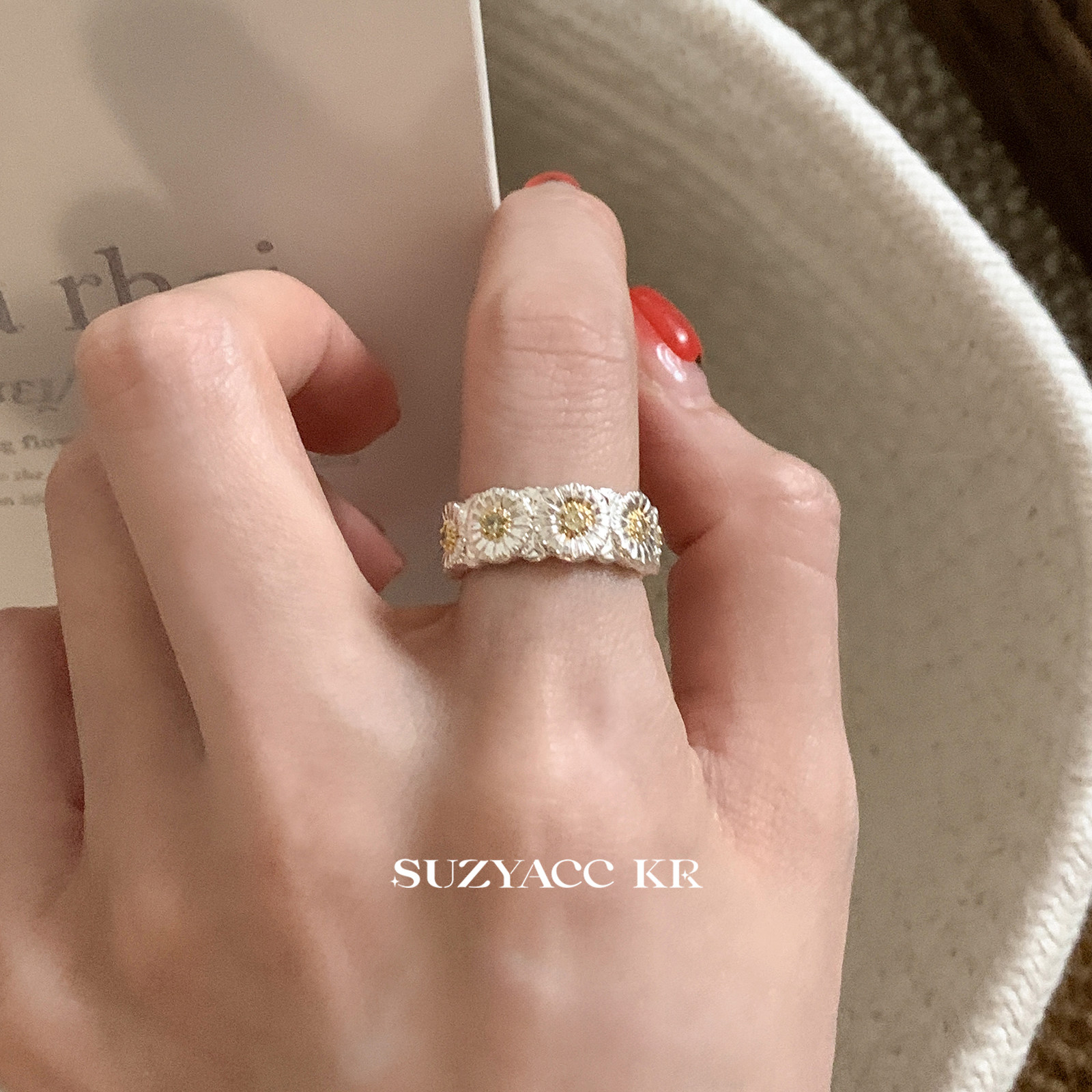 suzyacc kr老钱风重工小雏菊戒指小众设计高级食指戒个性气质指环