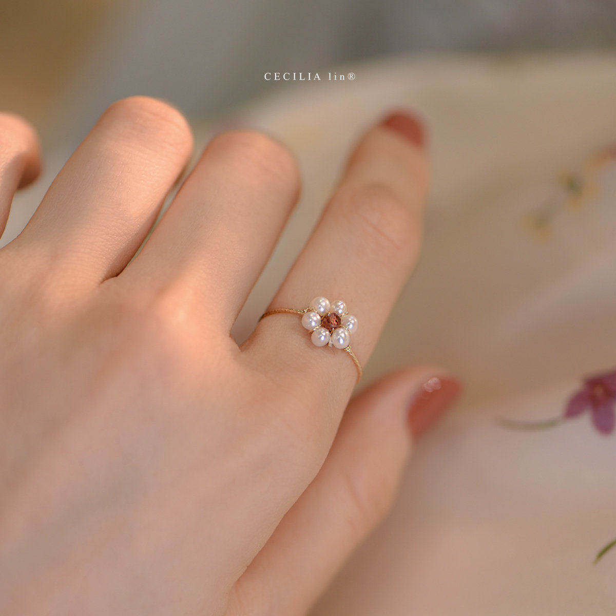 赛赛莉安石榴石珍珠14K包金戒指环食指ins少女时尚个性设计小众潮