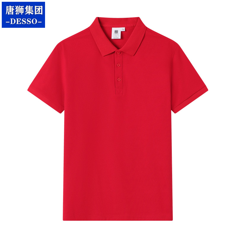 夏季短袖T恤男女同款纯棉翻领大红纯色宽松休闲POLO衫团体服定制