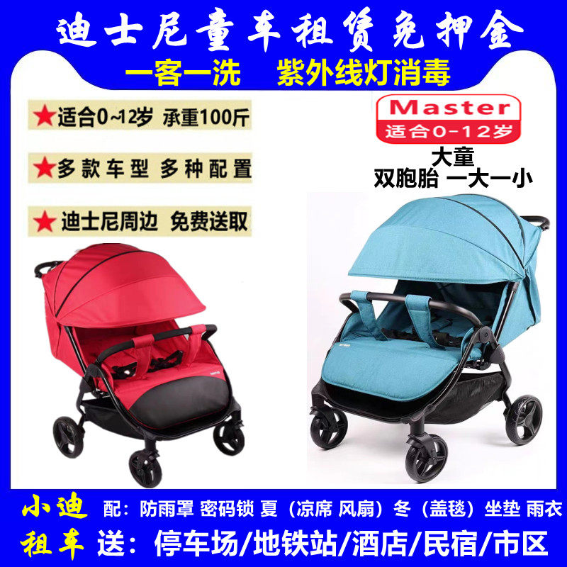 儿童推车出租上海迪士尼租车双人大童宝宝婴儿车溜娃加大童车租赁