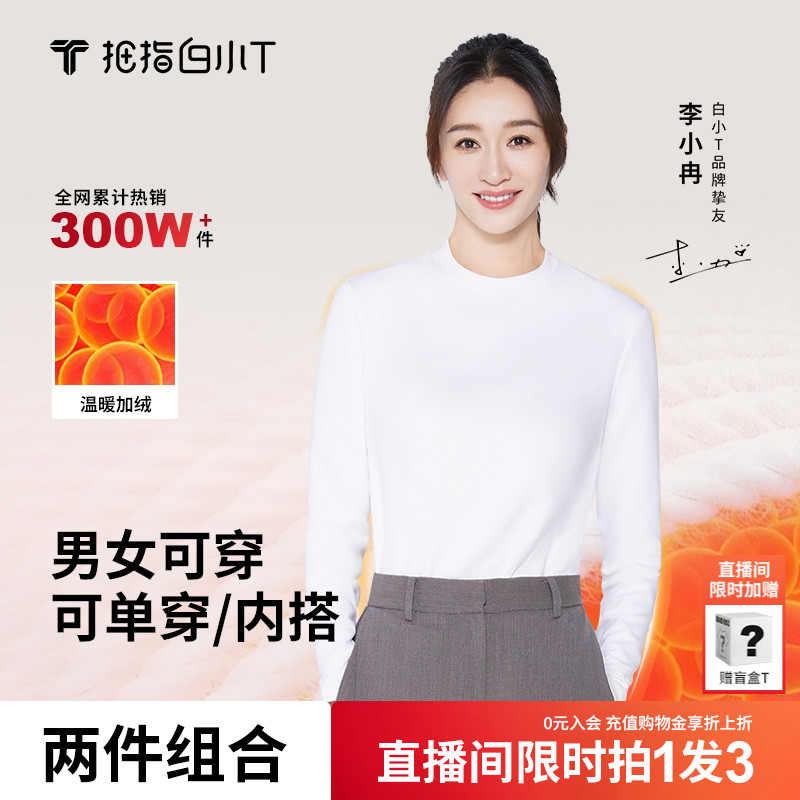 【2件】拇指白小T加绒加厚长袖t恤男女内搭上衣秋冬季保暖打底衫