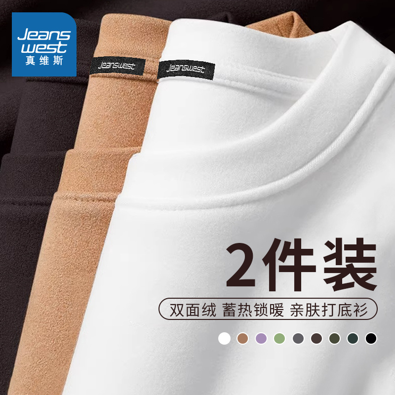 GV真维斯长袖打底衫男秋冬双面加绒加厚保暖T恤男款绒德高领内衣A
