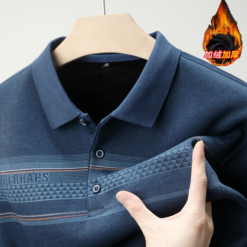 罗蒙加绒加厚polo长袖t恤男士秋冬季商务休闲亲肤保暖上衣打底衫
