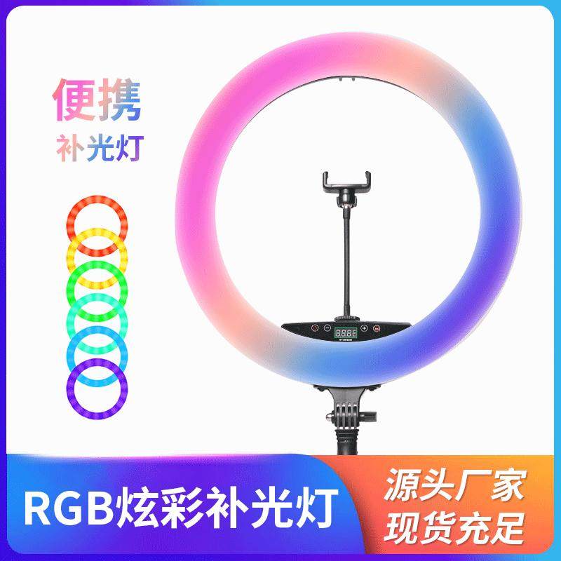 新款多功能RGB补光灯 摄影自拍19寸环形灯 多色炫彩rgb补光灯