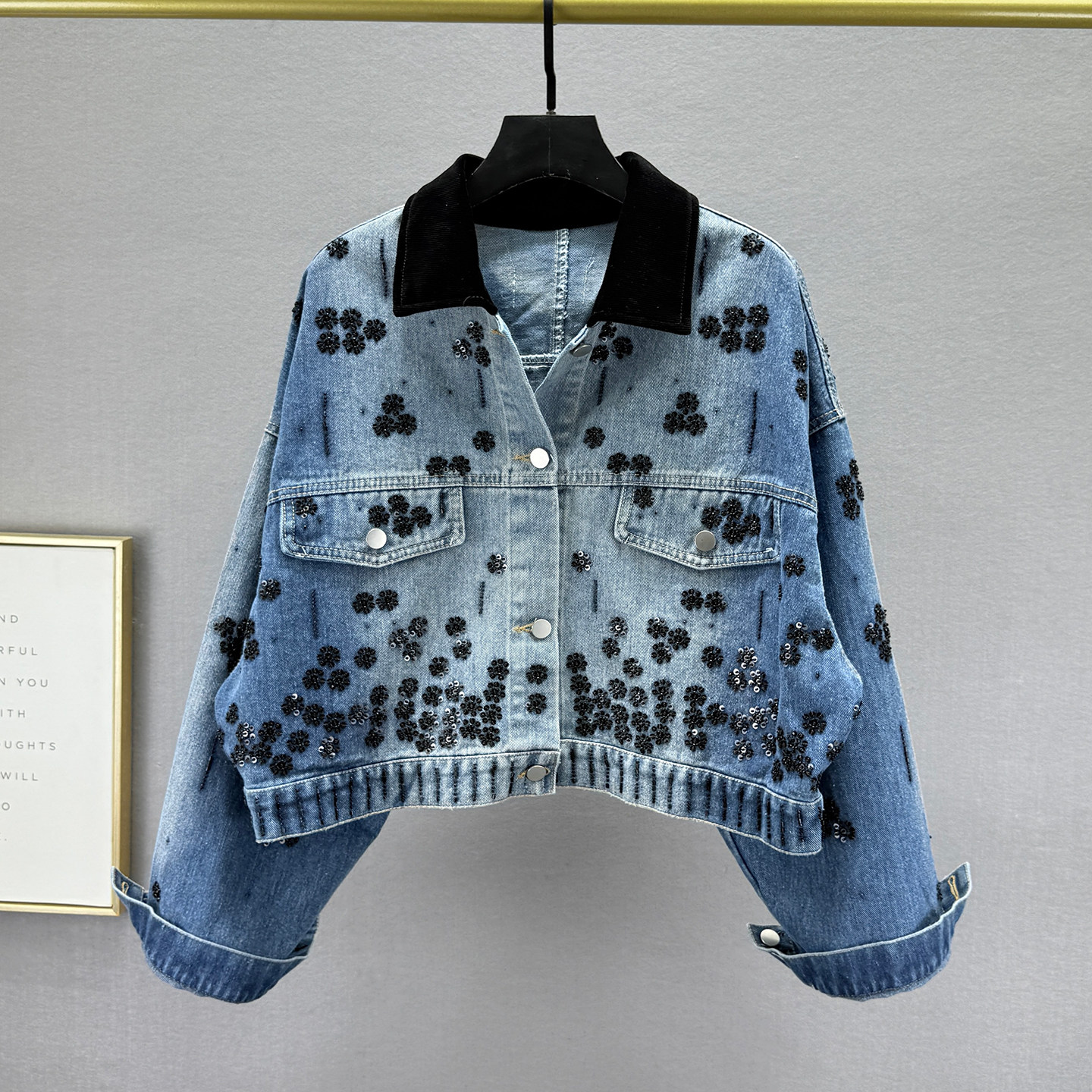 - 刺绣花朵牛仔外套女