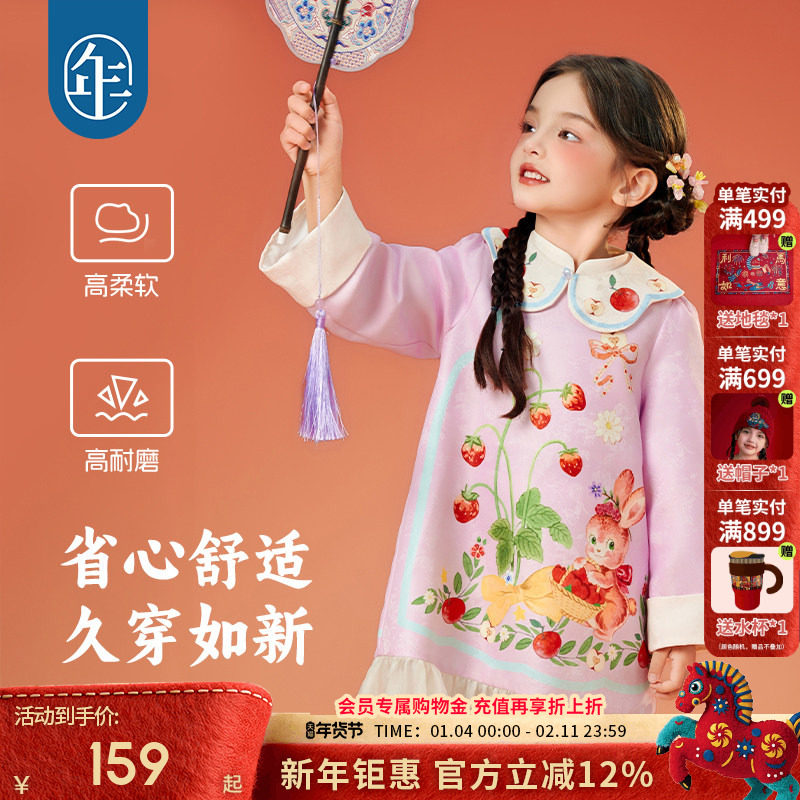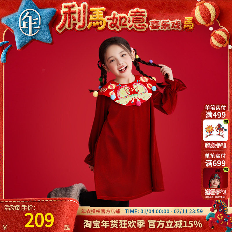 年衣童装儿童连衣裙冬季新款女童中式甜美女孩长袖裙子短裙拜年服