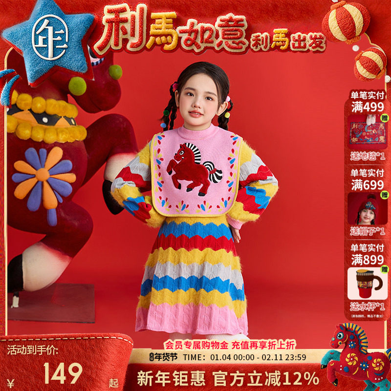 年衣童装儿童连衣裙冬季新款女童中式撞色女孩长袖裙子短裙拜年服