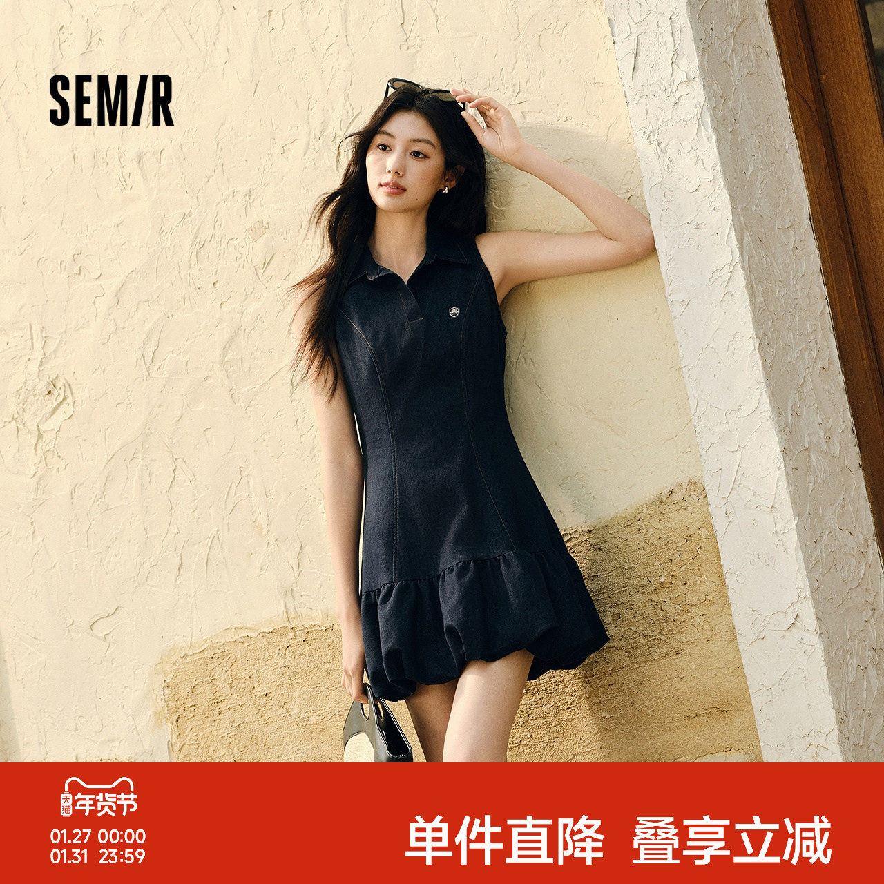 森马连衣裙女polo领无袖花苞裙甜酷2025夏新款辣妹分割短裙小个子