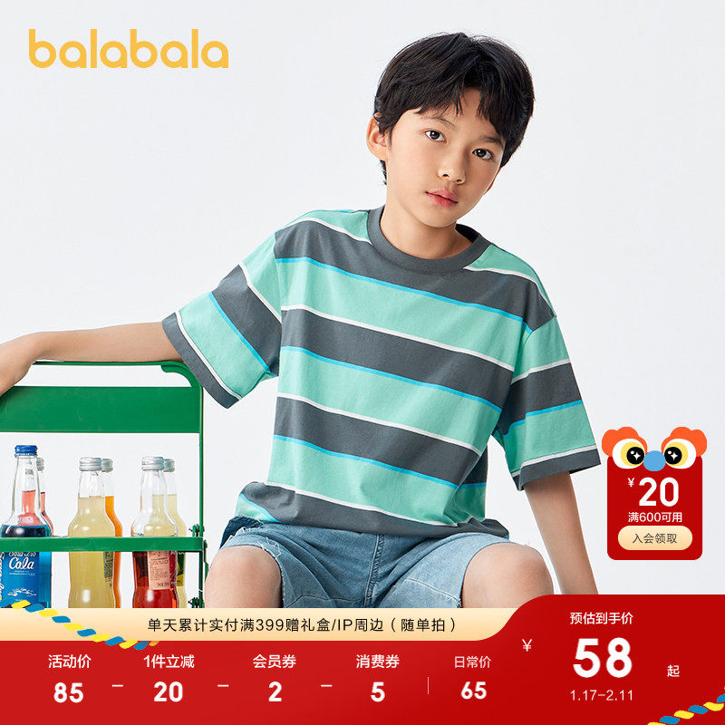 巴拉巴拉男童t恤童装春夏装儿童短袖纯棉中大童时尚条纹t打底衫潮