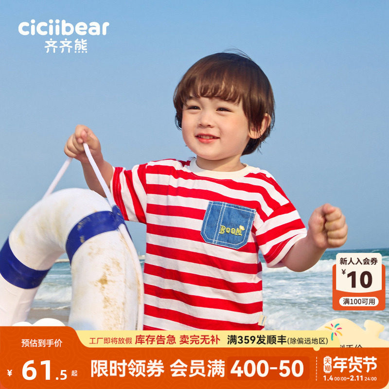 齐齐熊男童T恤短袖条纹圆领儿童夏款夏装新款宝宝撞色夏装打底衫