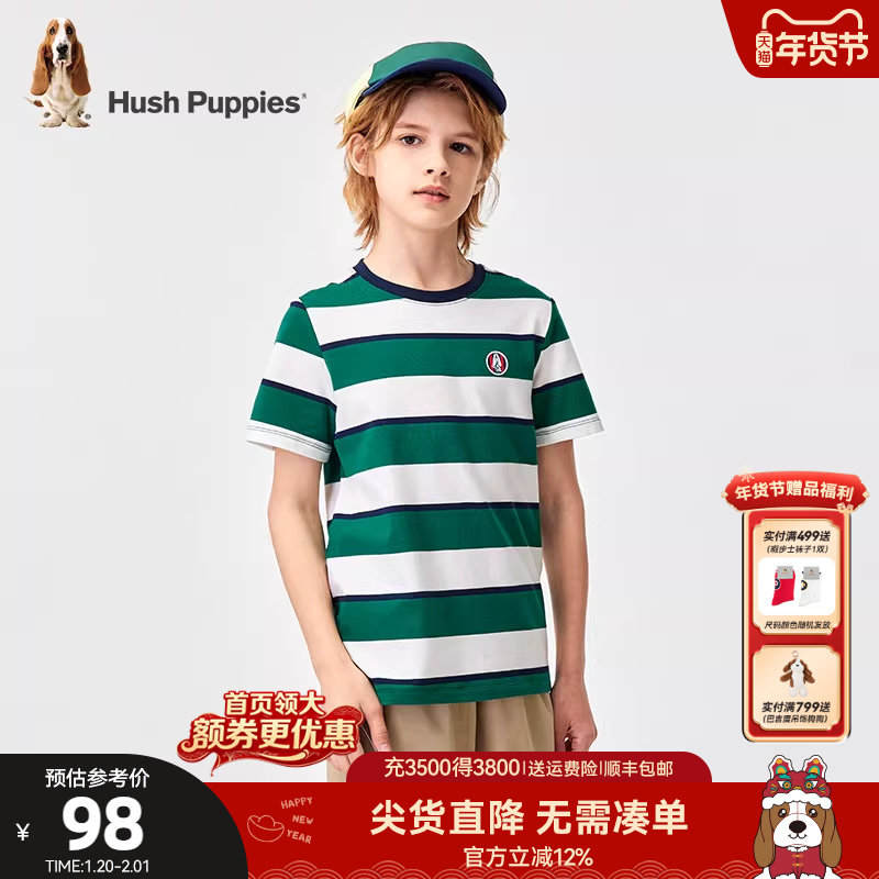 暇步士童装男童短袖t恤夏装新款大童条纹圆领上衣儿童柔软打底衫