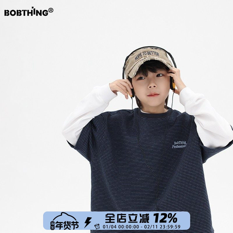 男童春夏细条纹加厚短袖T恤儿童高质感半袖宽松体恤童装打底衫潮