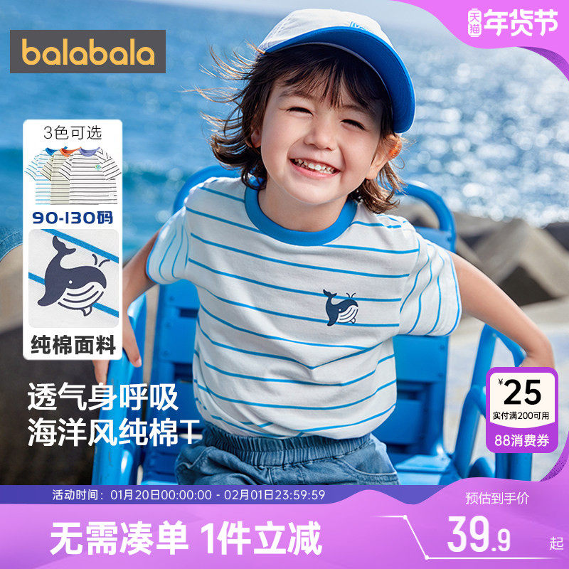 巴拉巴拉男童短袖T恤宝宝条纹上衣夏季装儿童半袖纯棉打底衫衣服