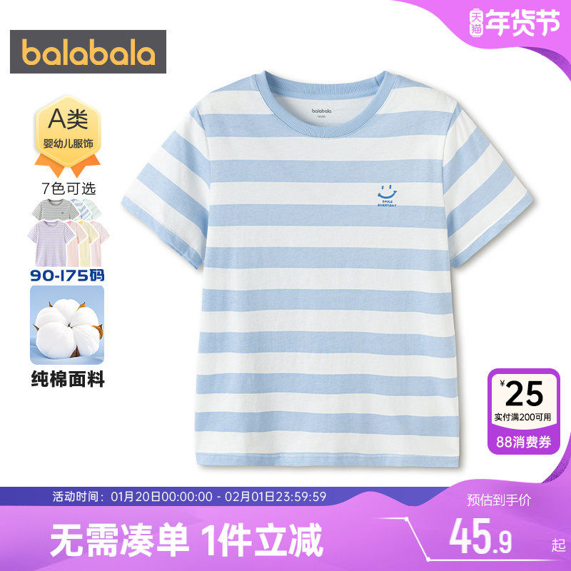 巴拉巴拉儿童短袖t恤男童女童条纹打底衫夏装新款童装宝宝纯棉孩
