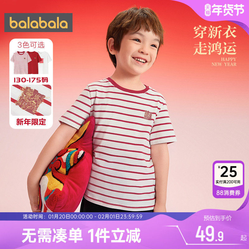 巴拉巴拉儿童短袖T恤红色条纹打底衫夏装新款童装男童女童上衣潮