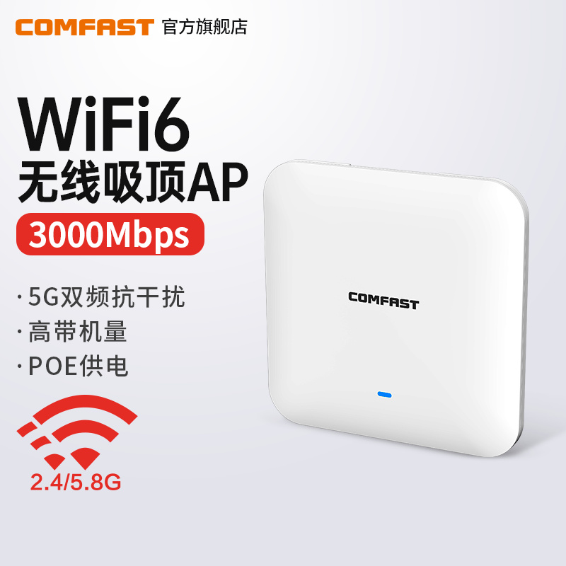 COMFAST CF-E393AX大功率WiFi6无线吸顶AP路由器3000M高速wifi传输商场酒店KTV双频5G工程级全屋无线wifi覆盖