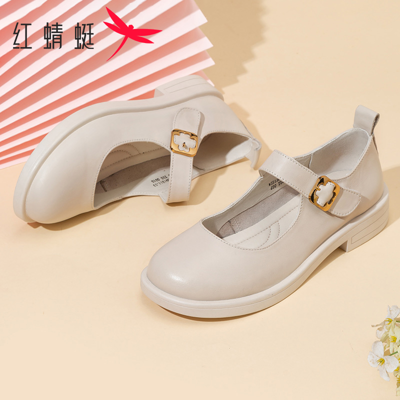 - 欧美新款女鞋学院风真皮平底平跟乐福鞋小皮鞋春秋英伦风中跟单鞋