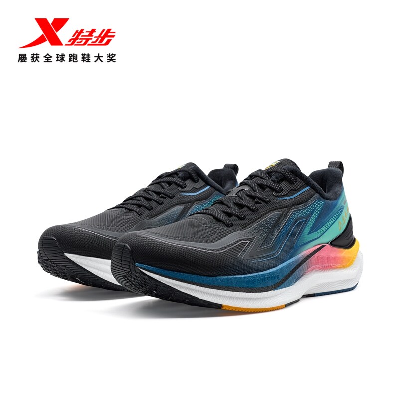 特步零压堡垒丨减震跑步鞋男鞋黑色冬季新款鞋子网面运动鞋跑鞋男