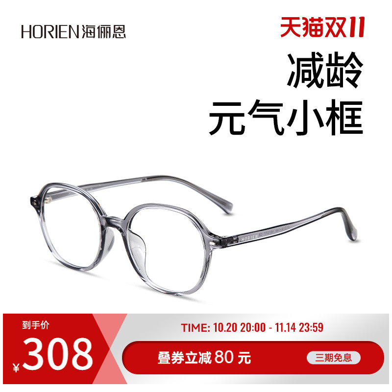 海俪恩小圆框近视眼镜蔡司镜片素颜透灰色眼镜框男女配镜N51077