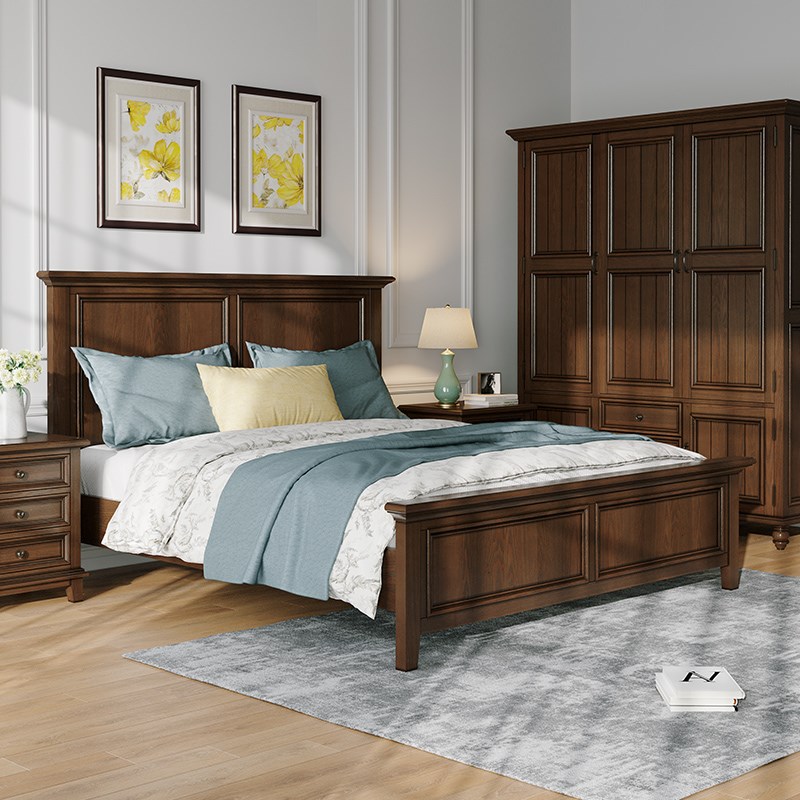 美式实木大衣柜全屋卧室乡村复古轻奢全原木推拉四门五门橡木柜子