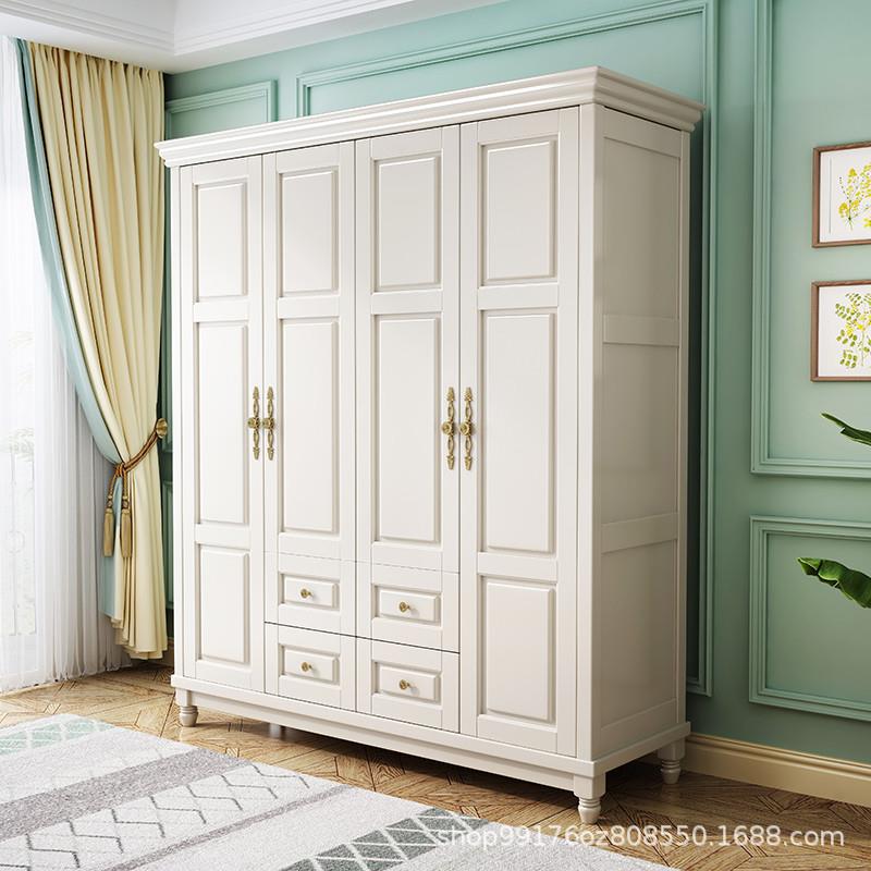 美式实木三四门衣柜储物柜34大衣柜子平开门现代简约卧室白色家具