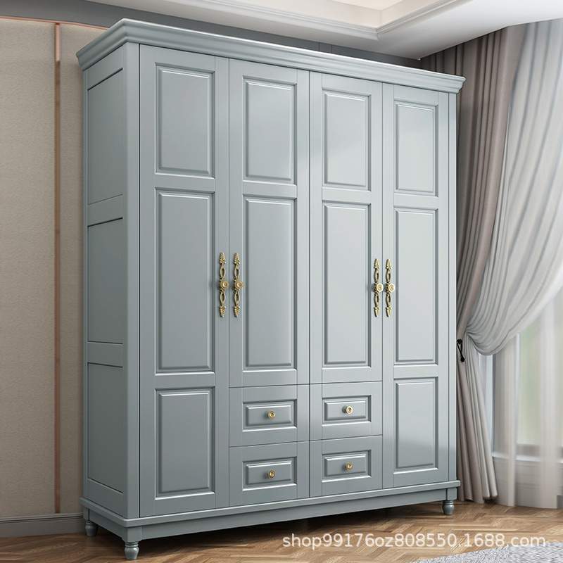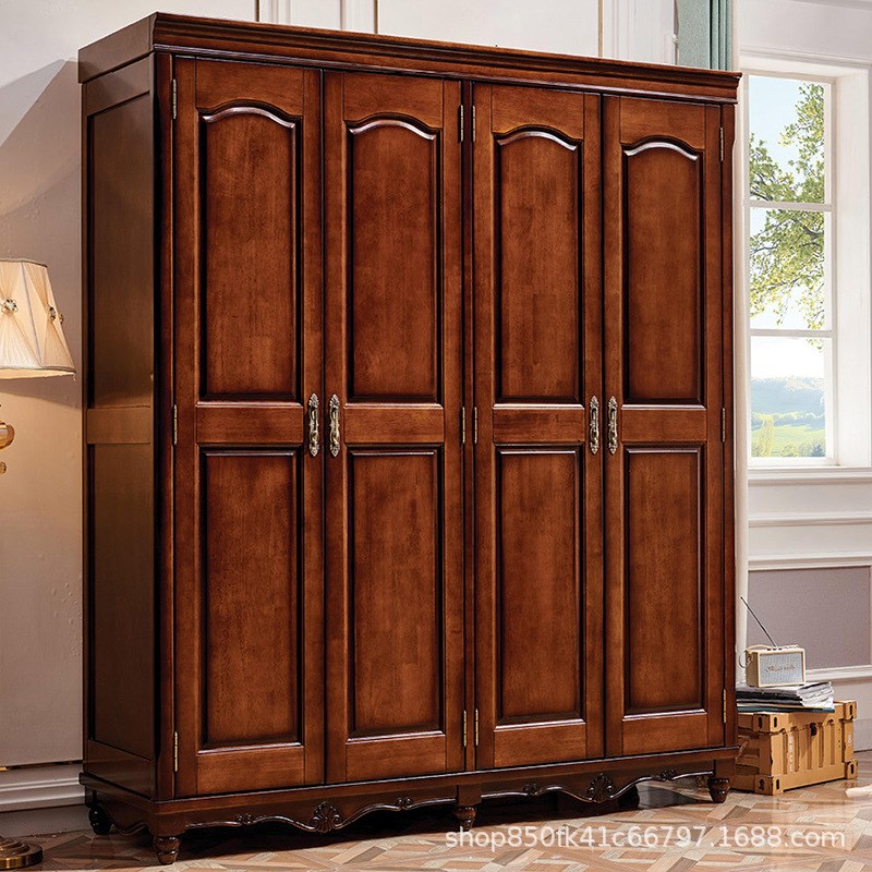 美式实木四门大衣柜欧式简约衣橱卧室别墅复古衣帽间大容量储物柜