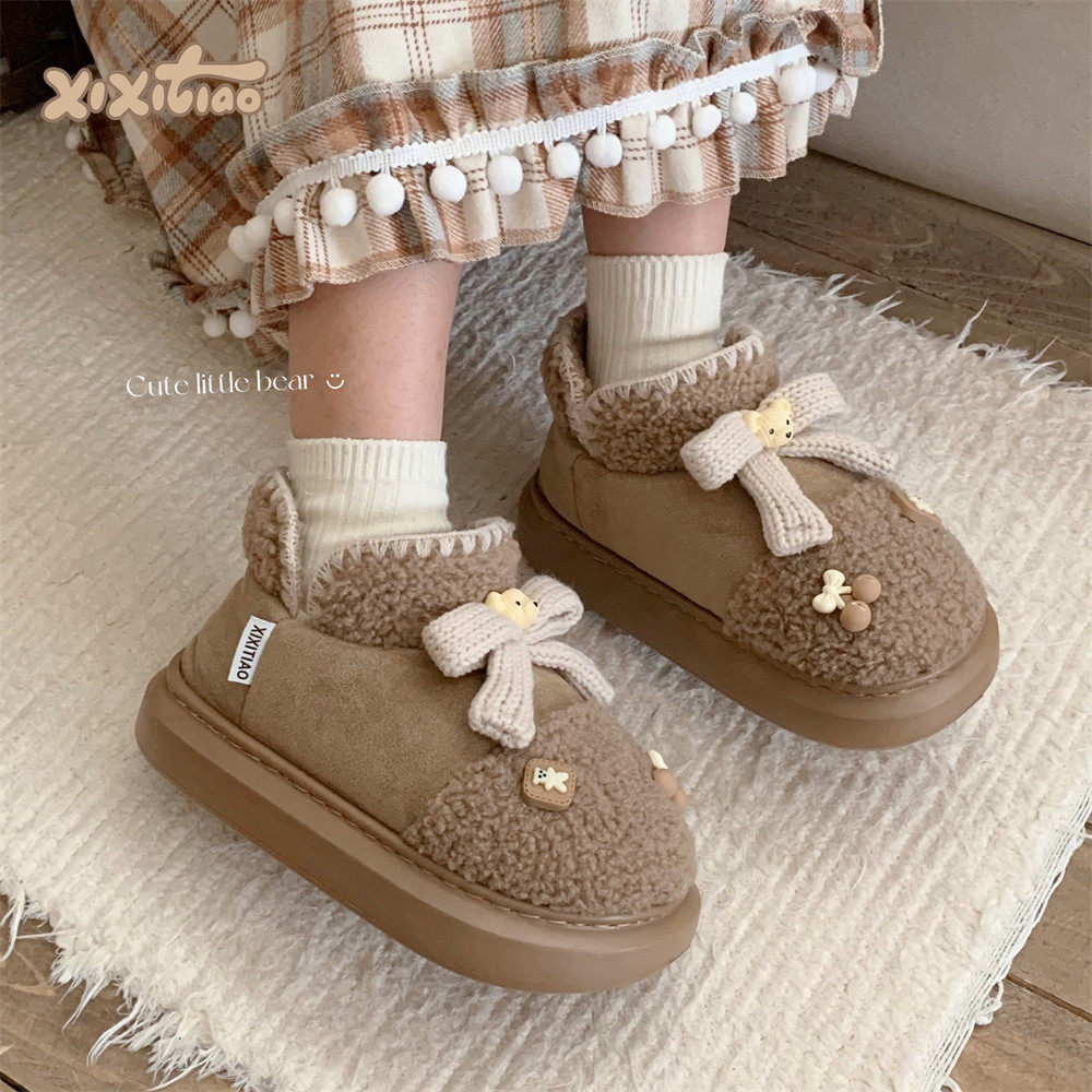 张雅琪同款TATA他她黄油小熊雪地靴女保暖加绒毛毛棉鞋靴KXL03DD5
