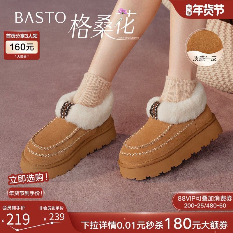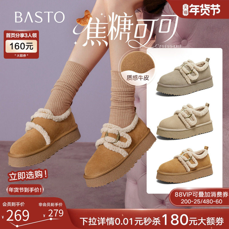 【焦糖可可】百思图25冬商场新款勃肯鞋毛毛鞋棉鞋加绒女雪地靴