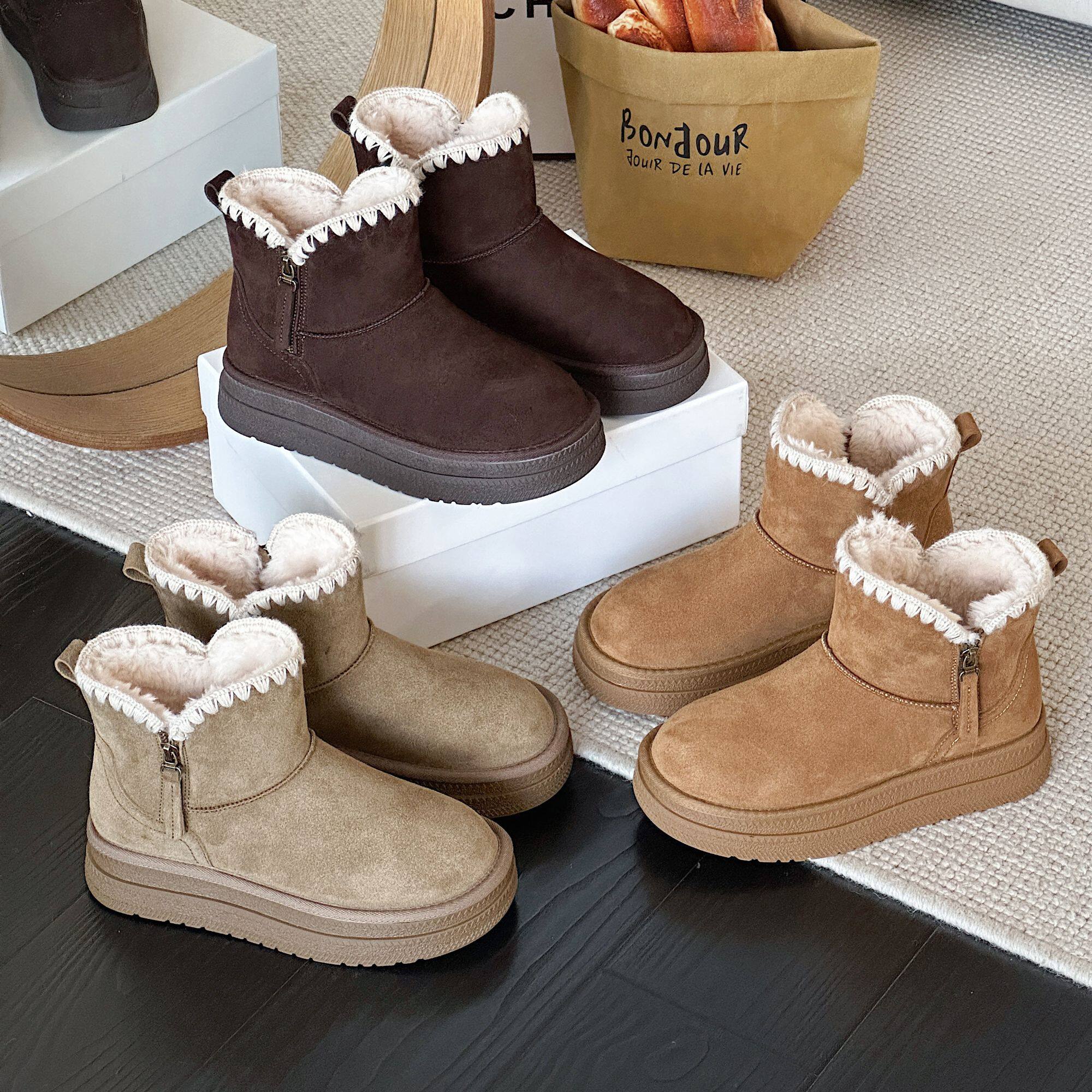 暖绒绒奶fufu~韩系温柔仙女雪地靴冬季加绒加厚保暖短筒毛毛鞋靴