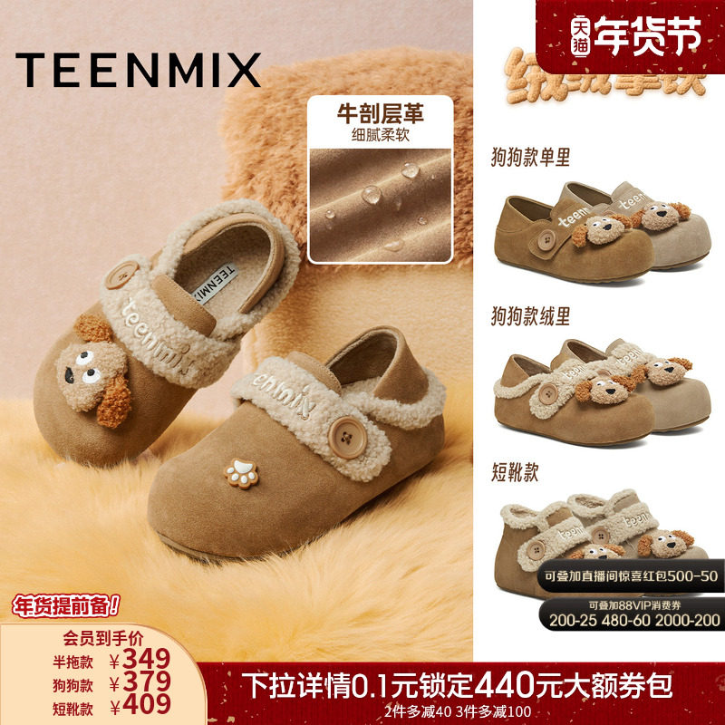 天美意复古厚底勃肯鞋加绒毛毛鞋棉鞋女雪地靴休闲单鞋2025秋新款