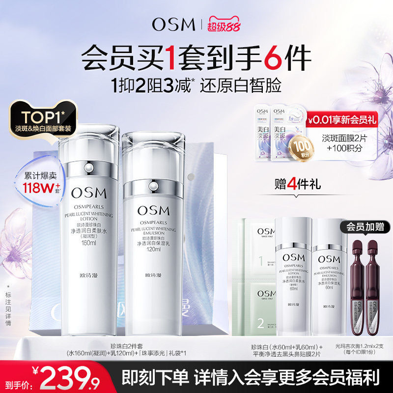 欧诗漫旗舰店珍珠白水乳套装美白淡斑补水官方正品女护肤品化妆品